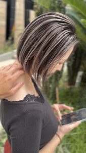 こちらは30代女性にオススメのバレイヤージュになります。 ブリーチで筋のようなデザインにする際 ◼️筋が太すぎる ◼️色がシルバーまたはくすむ この様な事になる…